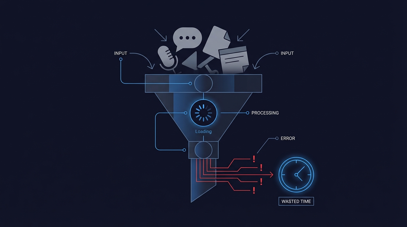 Hours wasted re-reading notes and hunting for feature requests in Slack.